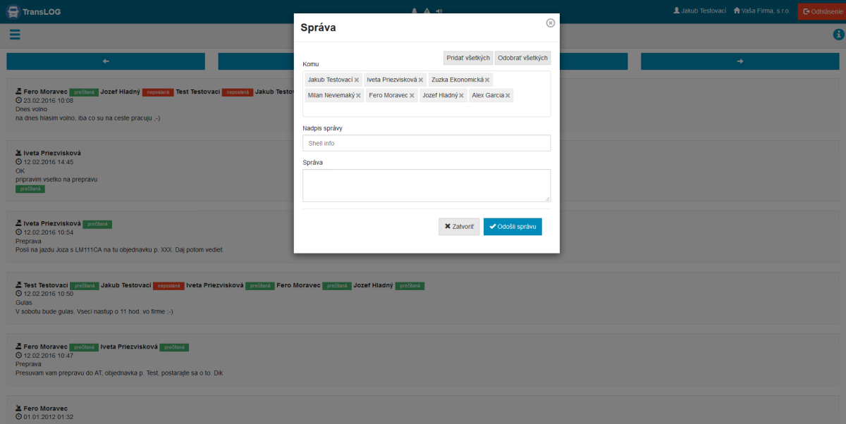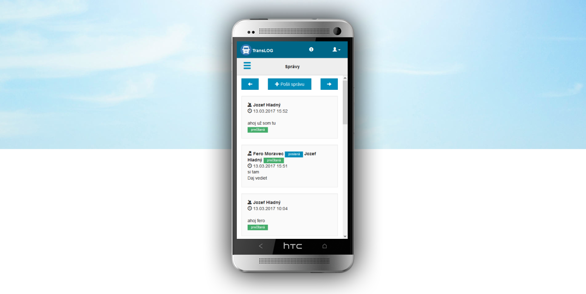- možnosť posielania rôznych príležitostných notifikácií všetkým špeditérom a vodičom, alebo vodiči či špeditéri medzi sebou