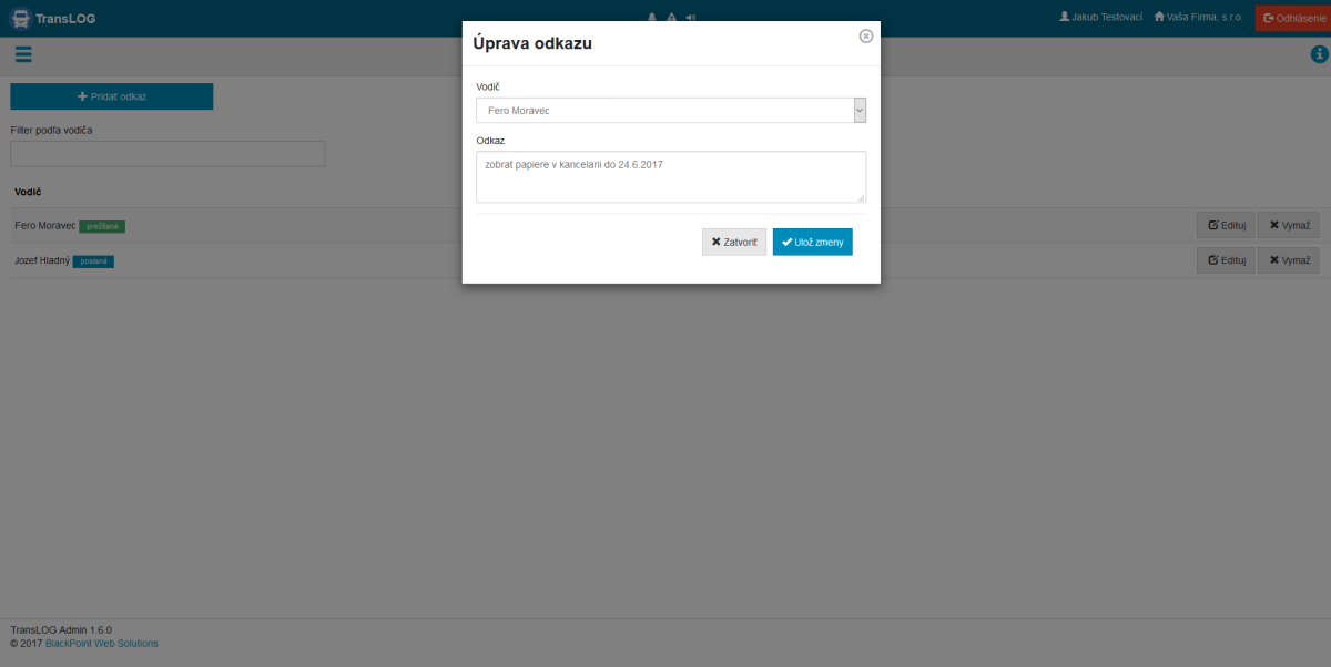 - možnosť zasielena odkazov pre vodičov s notifikáciou