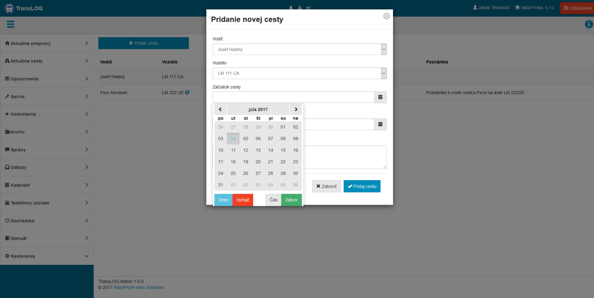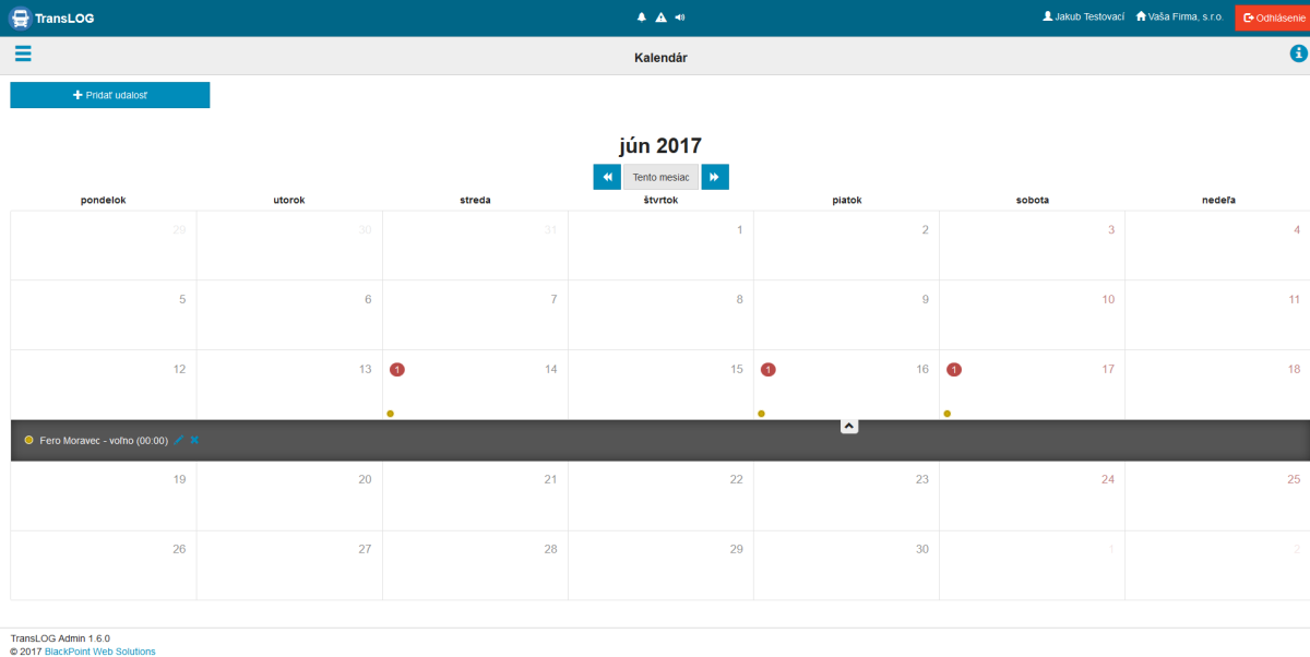 - kalendár pre plánovanie voľna alebo úloh pre špeditérov aj vodičov
