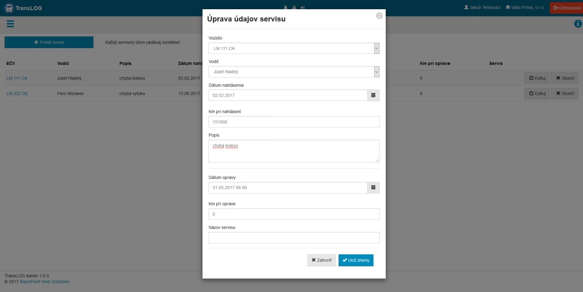 - zoznamy servisných úkonov pre jednotlivé vozidlá zadávané vodičom alebo špeditérom, s upozornením pre špeditéra